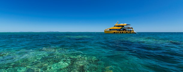 Hamilton island sunset dinner cruise. Expansive deck space, a licensed bar, and a comfortable saloon ensure guest comfort.